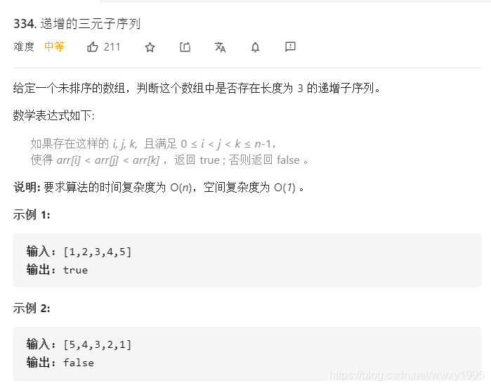 class Solution {public: bool increasingTriplet(vector & nums) { int firstMin = INT_MAX, secondMin = INT_MAX; for(auto num:nums){ firstMin = min(firstMin,num); if(num firstMin) secondMin = num; if(secondMin!=INT_MAX&&num>secondMin) return true; } return false; }};